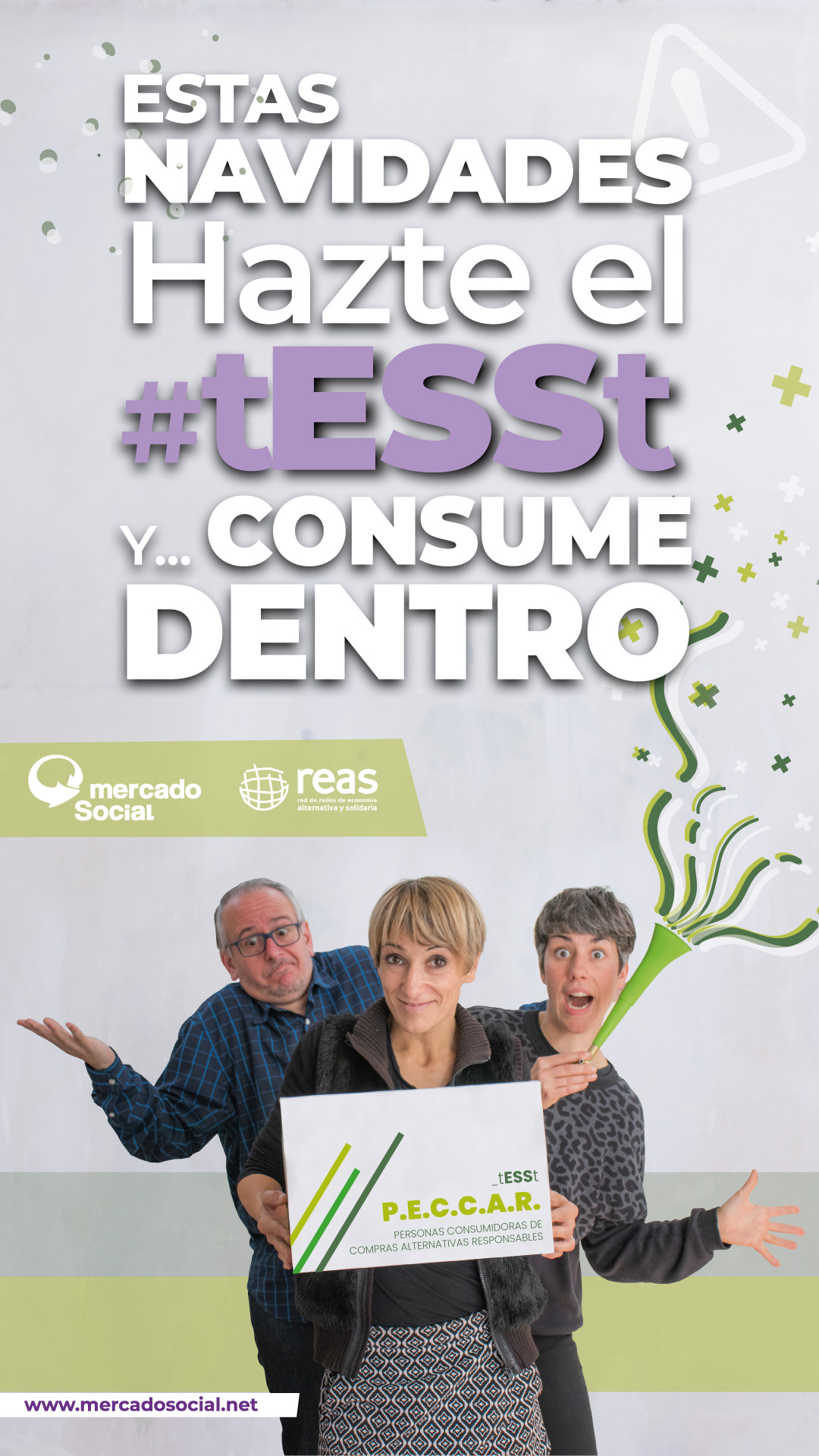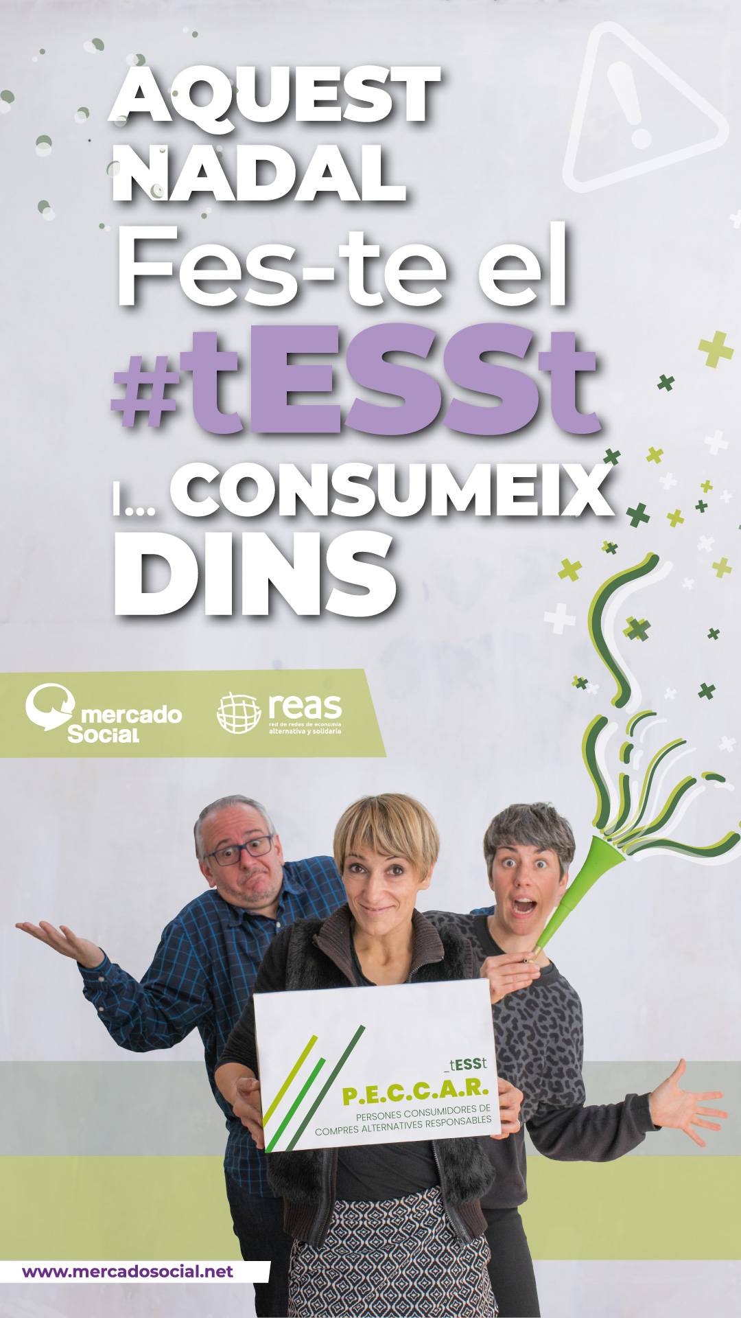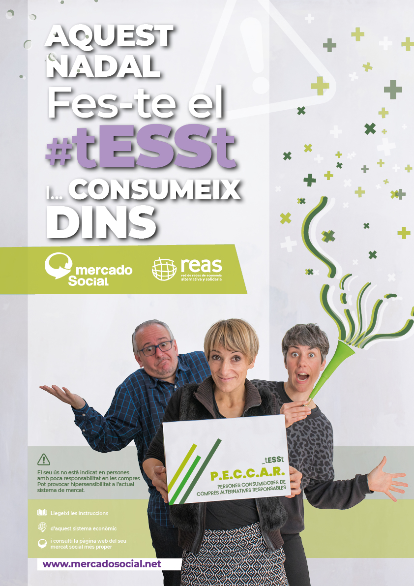 - Ets part de l’Economia Solidària i dels moviments socials transformadors? En aquestes dates, no oblidis mirar cap a les teves xarxes per afavorir amb la teva compra projectes de transformació social i no als dolentíssims del capital… Aquest Nadal, fes-te el #tESSt i #ConsumeDentro